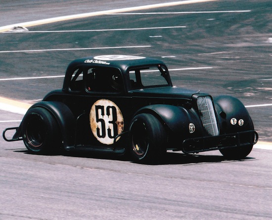 Legend Car - Cole quickly adapted his style of driving from the dirt tracks to pavement. With it's light 1,300 lbs, short 73” wheel base and powerful 122 hp Yamaha engine, the 5/8 scale, '34 Ford Coupe was a great intro into the world of pavement racing.